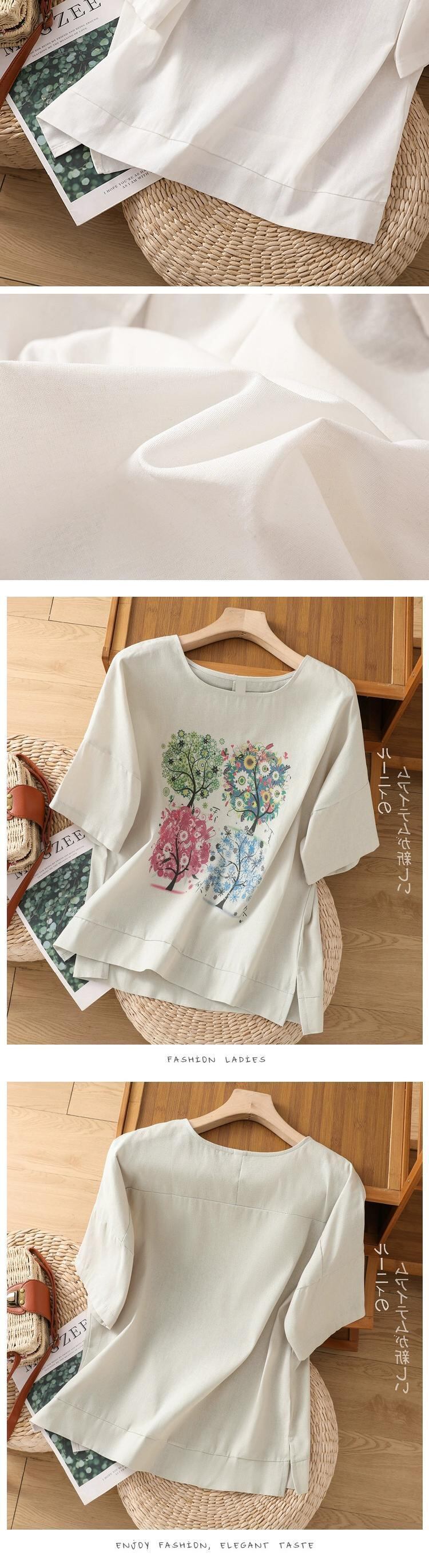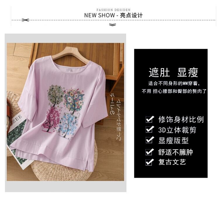 eign trade ese オリジナルシングルビッグネーム撤退レトロプリントリネン半袖 Tシャツレディースルーズラウンドネックコットンとリネントップ夏 サマー 夏物 Oネック sine28978498156