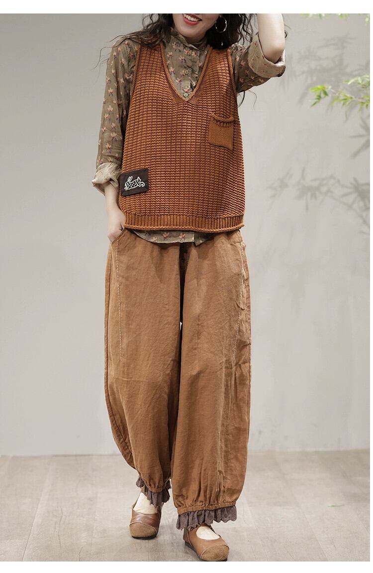 Eign Trade Export Big-name Tail Goods キャビネットから撤収レトロレースレギンスハーレムパンツ女性の弾性ハイウエストコットンとリネンのカジュアルパンツ エラスティック 伸縮 sine37926483393