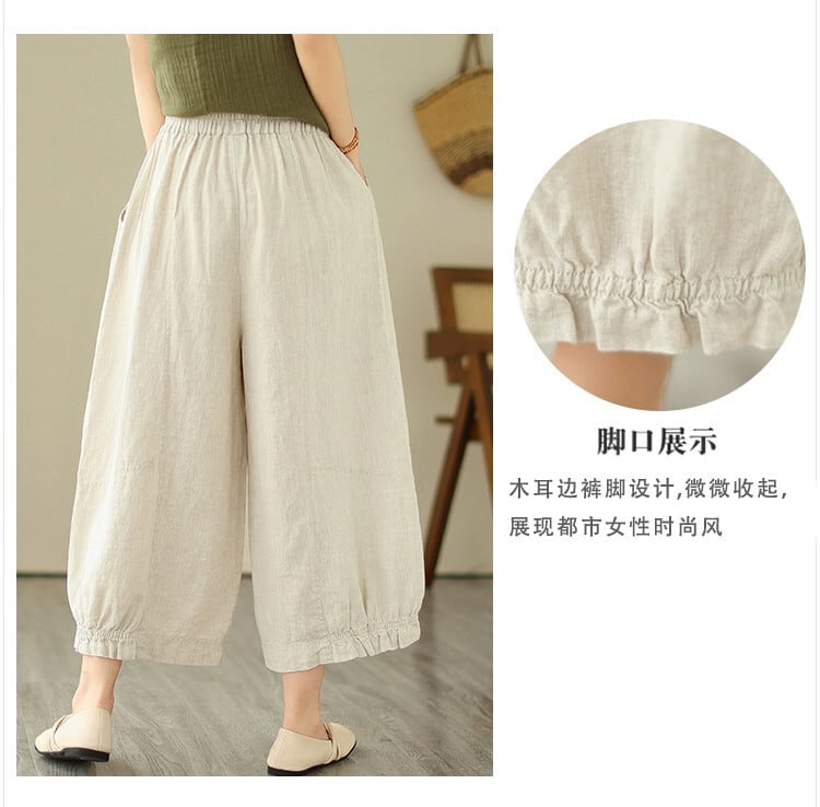 Eign Trade Counter ブランド テール グッズ レディース レトロ コットンとリネン ワイドレッグ パンツ レディース 伸縮性 ハイウエスト カジュアル リネン 9 ポイント ハーレム パンツ エラスティック sine62730636991