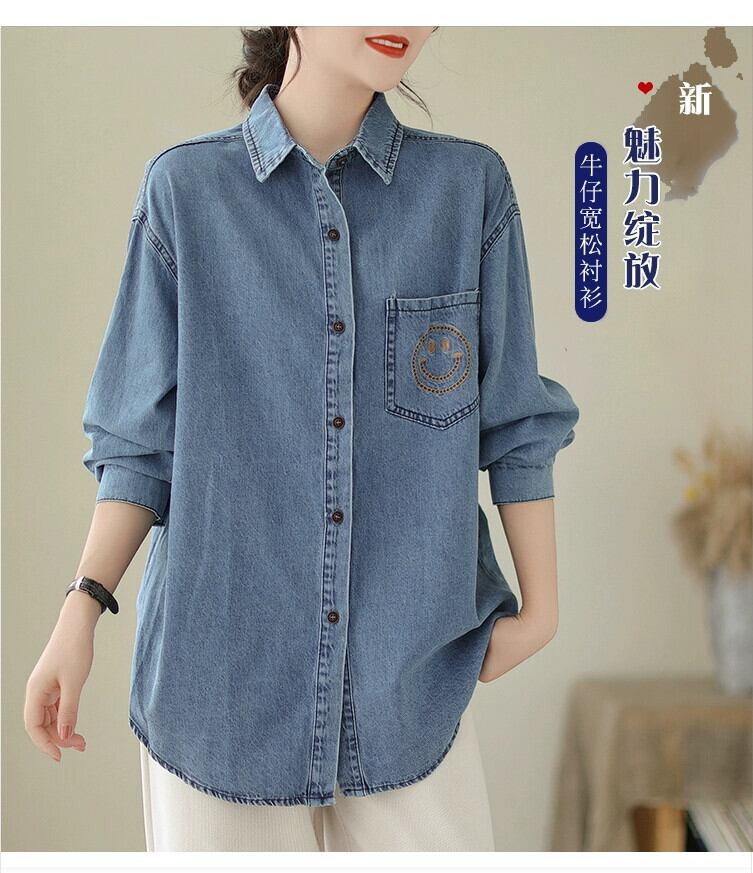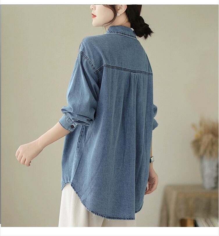 クリアランス クリアランス カウンター 牛グッズ 撤去 ブルー デニム シャツ ジャケット レディース 秋新作 ルーズ ポロカラー トップス オータム 秋物 sine96478045753