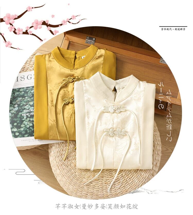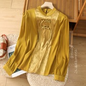 モールビッグネーム撤退最終在庫中国風ディスクボタンジャカードシャツ女性のレトロジャカードサテン長袖トップ ロング sine19088149150