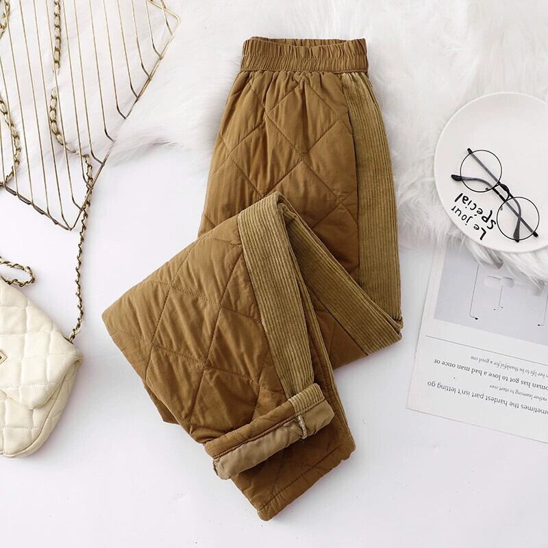 クリアランスカウンター最後の在庫レトロ菱形暖かい綿パンツ女性ハイウエストカジュアルキルティング肥厚ハーレムパンツ ハイウェスト コットン sine23115717659