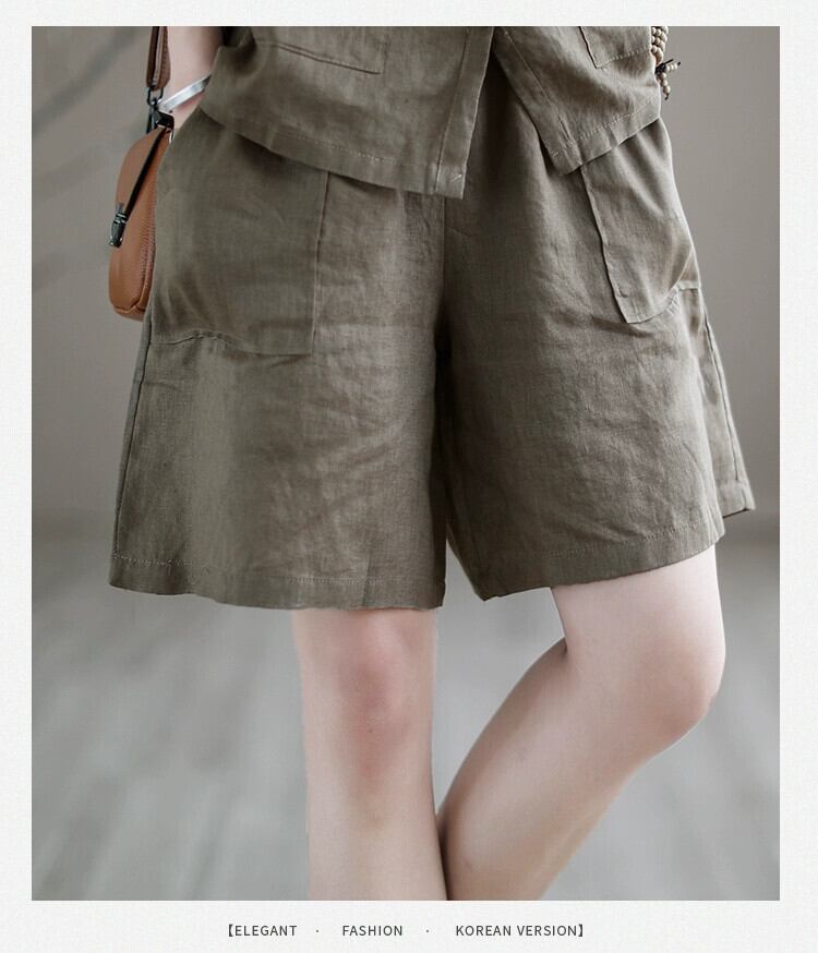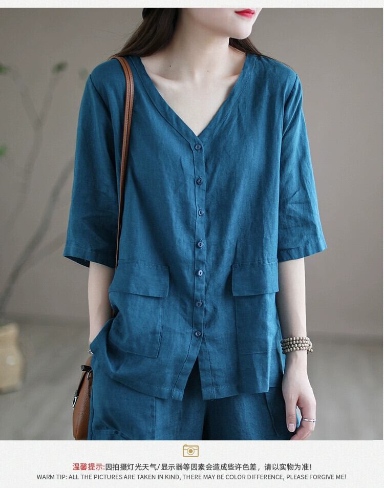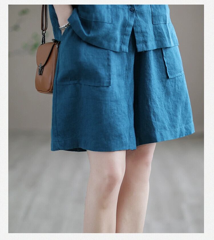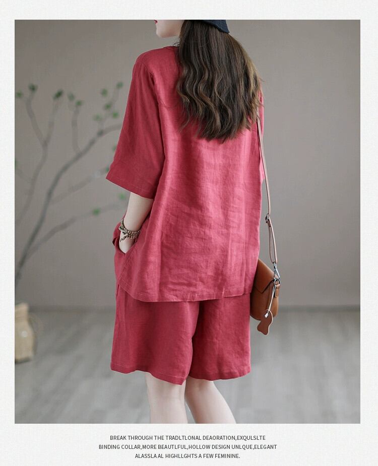 クリアランス漏れ〜カウンター商品ビッグブランドレディースルーズ半袖シャツトップカジュアルショーツコットンとリネンのツーピーススーツ ブルマー sine86417563723