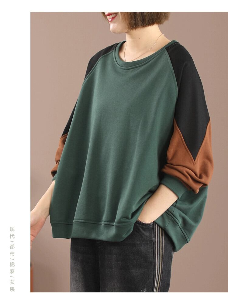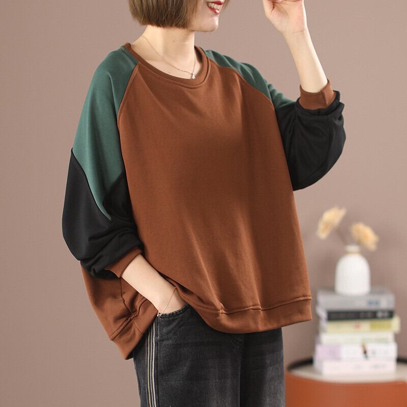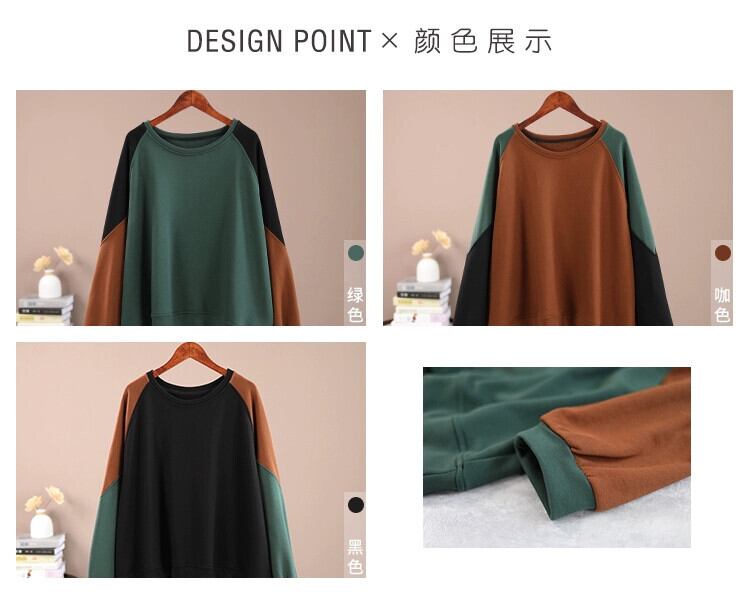 ファットシスタープラスサイズの女性の秋と冬ルーズレトロ芸術的な配色プルオーバーボトリングトップ長袖スウェットシャツ ロング 大きめサイズ オータム 秋物 ウィンター 冬物 sine67037355008