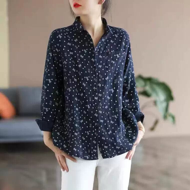 第一線の有名な貿易輸出在庫切れ婦人服クリアランス花柄ボトムストップスリネンコットンリネン長袖シャツ ロング sine60802712881