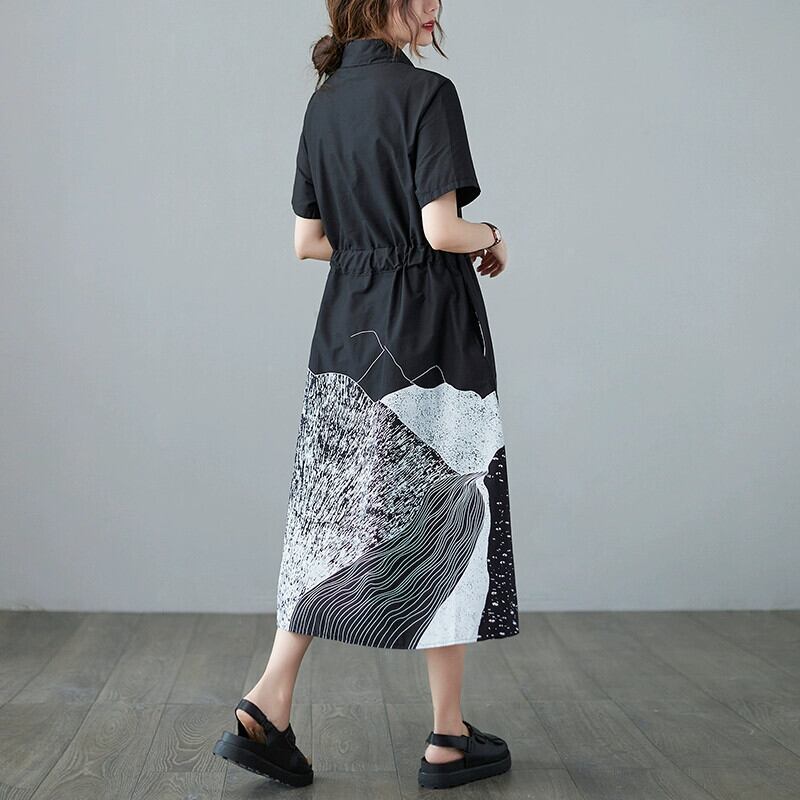 香港スタイル半袖シャツドレス女性の夏 2021 ルーズファット mm プリントスプライシングレースアップウエストドレスプラスサイズの婦人服 大きめサイズ サマー 夏物 sine2956350485