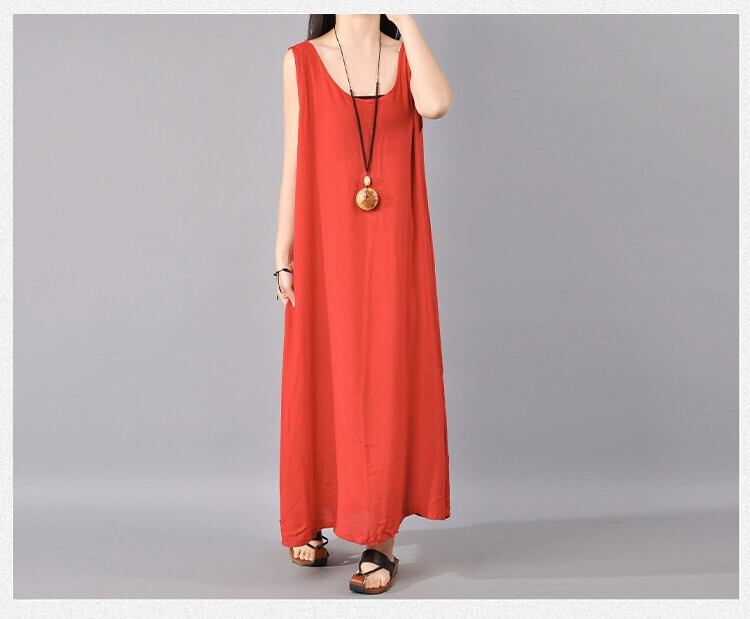 プラスサイズの女性のキャミソールドレス 2021 新しい夏ルーズ文学ソリッドカラーミッドレングス通気性と軽量ドレス 大きめサイズ サマー 夏物 sine7321627107
