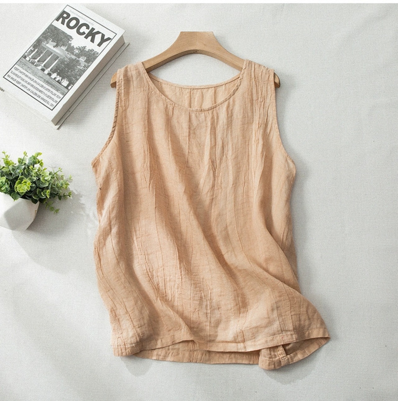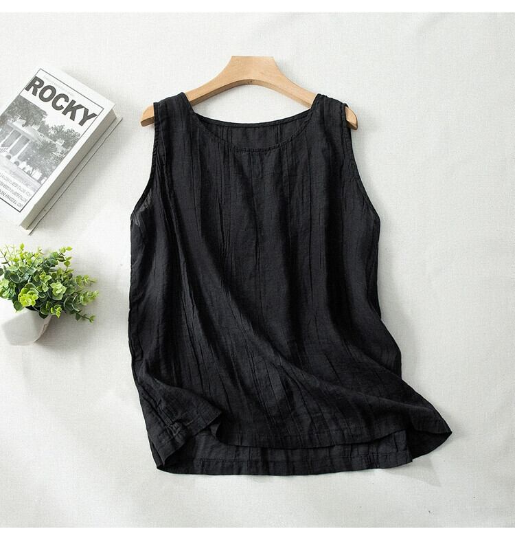 ディスカウントショッピングモールの引き出しキャビネット、カットオフラベル付き、シングル女性用のゆったりとしたコットンとリネンのキャミソール、薄いインナーレイヤーとボトムのリネントップ付き sine52258317881