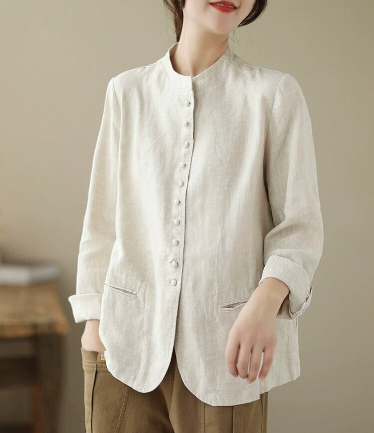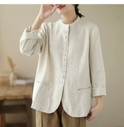 漏れを拾ってください!女性の有名商品、芸術的な綿と麻のスーツジャケット、ゆったりとしたシングルブレストの長袖トップスの撤去に反対 ロング コットン sine46083948032