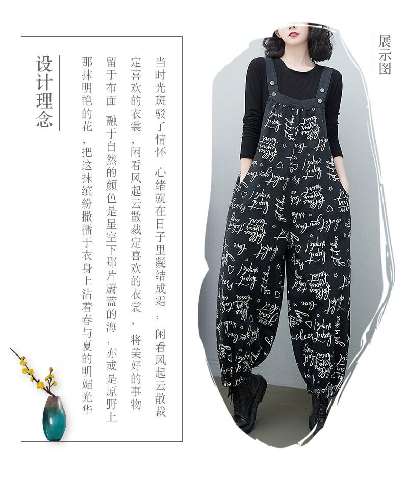 デニムオーバーオール女性の 2022 春ルーズ大きいサイズ西洋スタイルプリントウエスト腹カバー痩身ジャンプスーツハーレムパンツ 大きめサイズ スプリング 春物 sine61869555088