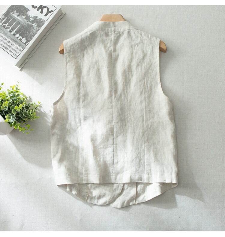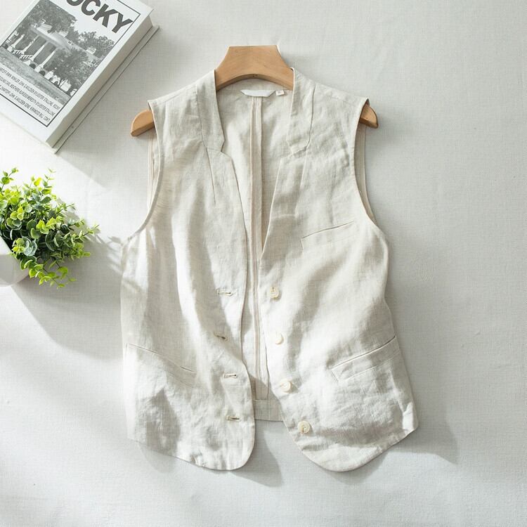 特別オファー〜これらの綿とリネンのベストジャケット女性、ルーズスリミングカジュアルノースリーブリネンVネックベスト薄いトップ コットン sine55414608900