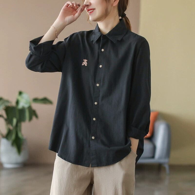 クリアランスリーク〜既製の女性用文学的かつ芸術的な多目的長袖ラペルシャツ、ゆったりとしたカジュアルな刺繍入りカーディガントップ ロング レッド sine61072983729