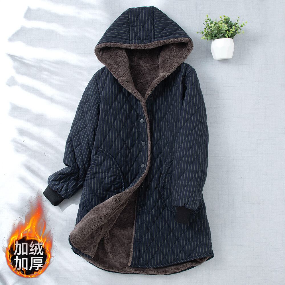 クリアランスカウンター最後の在庫レディースレトロストライプミッドレングス暖かいウインドブレーカージャケットフード付きコットン、リネン、ベルベットコート sine6764669060