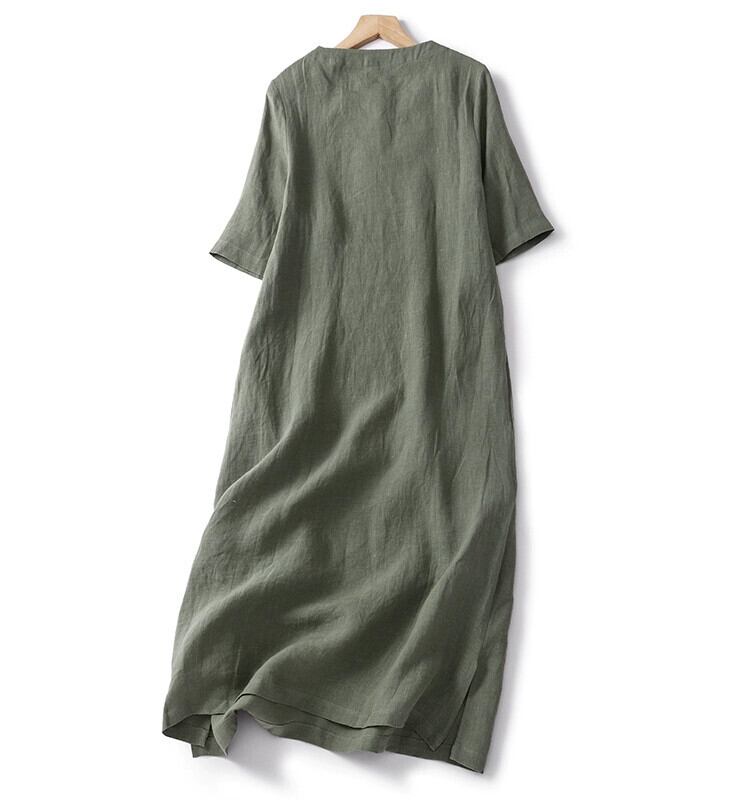 eign trade ese オリジナル注文ビッグブランド撤退中国風ラミーチャイナドレスレトロルーズ半袖コットンとリネンのドレス sine3271345795