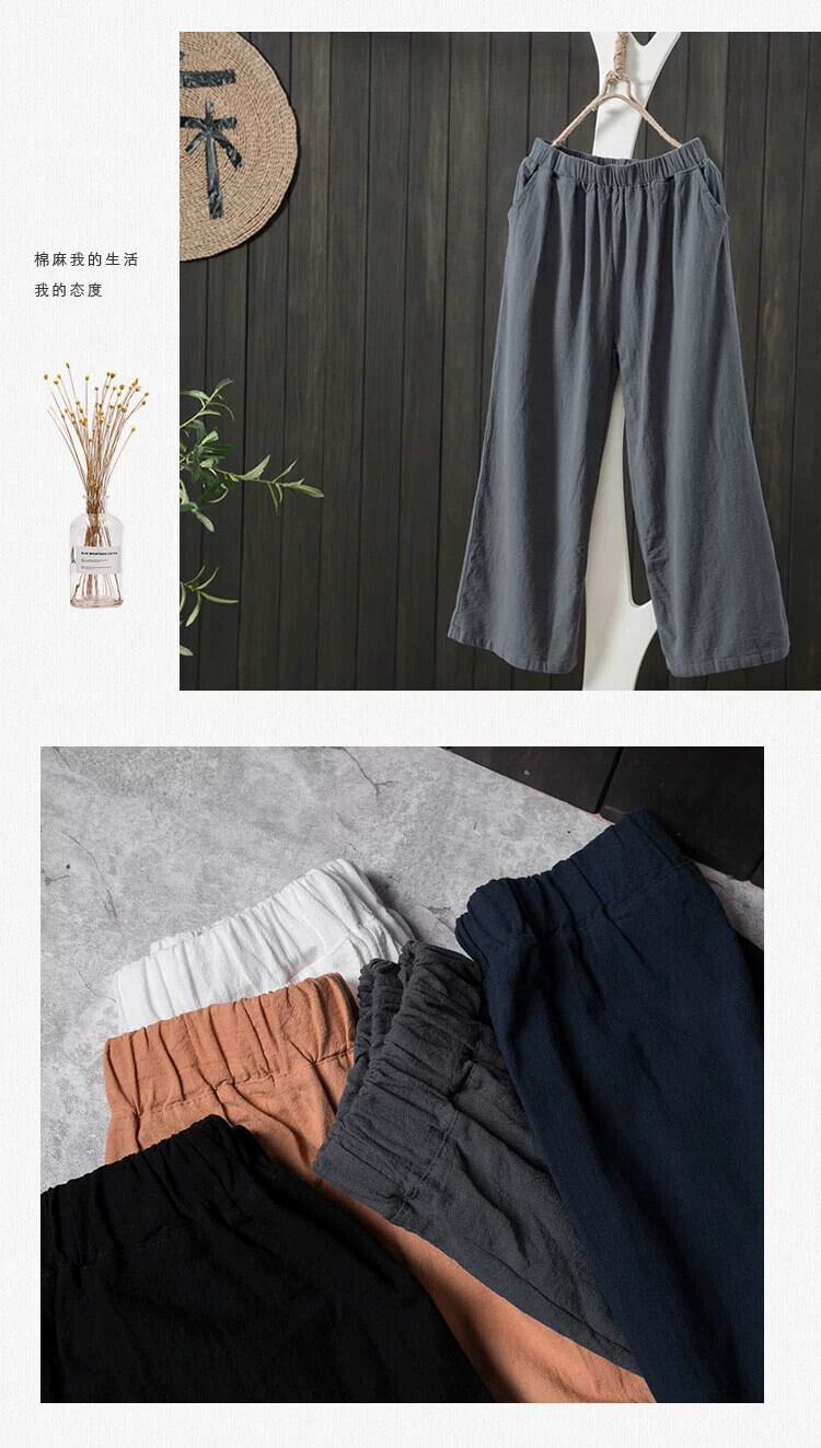 綿麻ワイドレッグパンツレディース、薄手、ゆったり、大きいサイズ、カジュアル、3点学生スリム、アーティスティックリネンストレート9点パンツ コットン 大きめサイズ sine41842637485