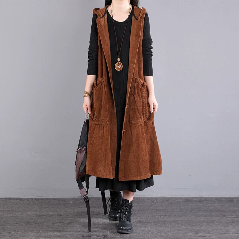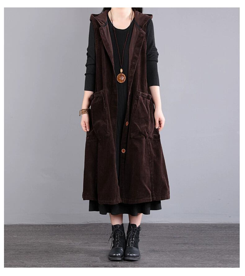 ディスカウント ストア ショッピング モールの女性のレトロ コーデュロイ ミッドレングス ベスト ジャケット ルーズ コーデュロイ ウインドブレーカー ロング スカート sine70802727507