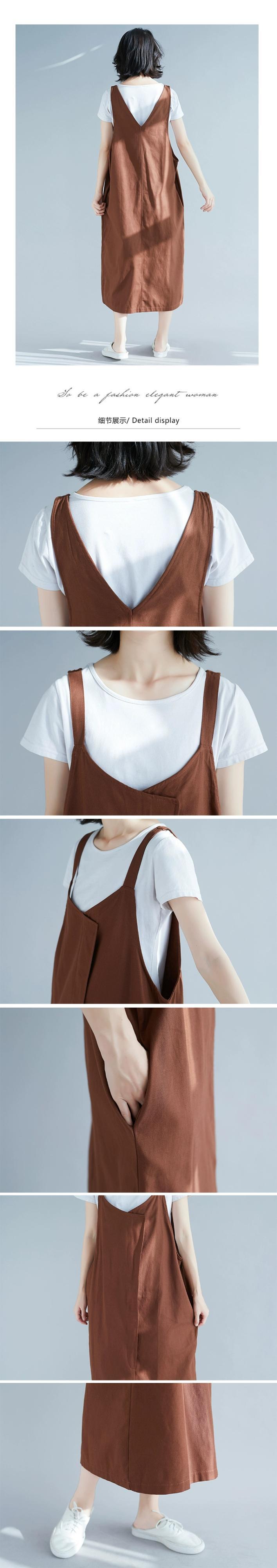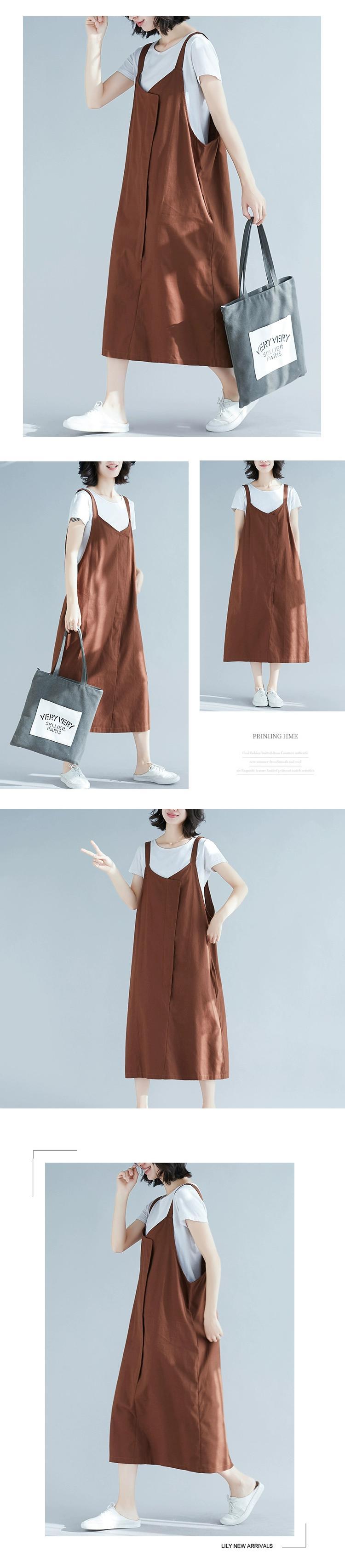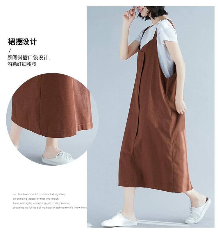 コットンとリネンのサスペンダードレスの女性の春と夏の 2021 新しい緩い大きいサイズのスタイルカジュアルミッドレングスノースリーブサスペンダースカート 大きめサイズ スプリング 春物 サマー 夏物 sine46961432718