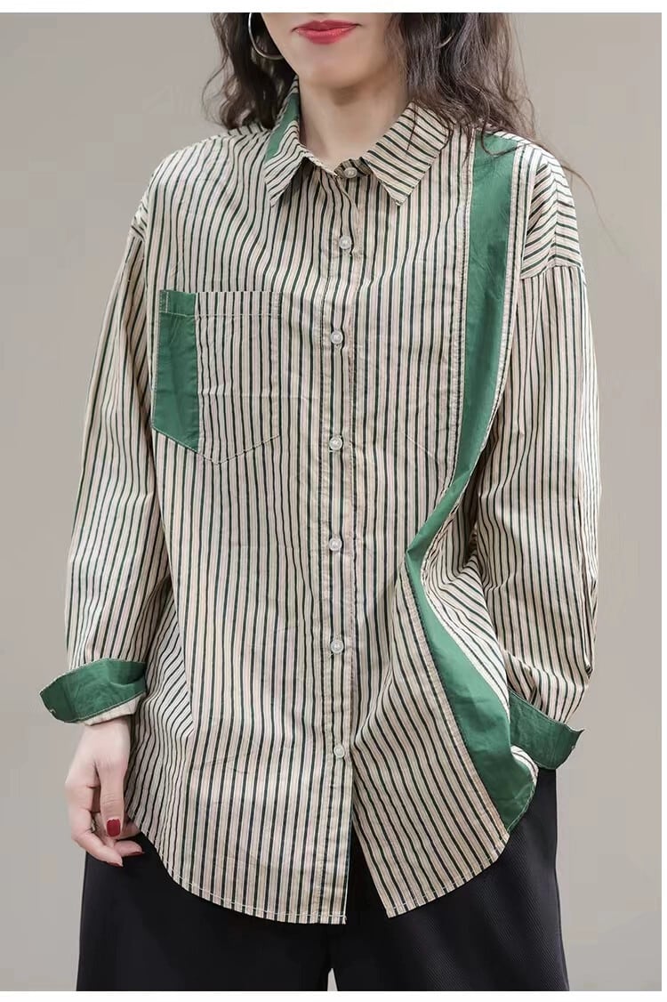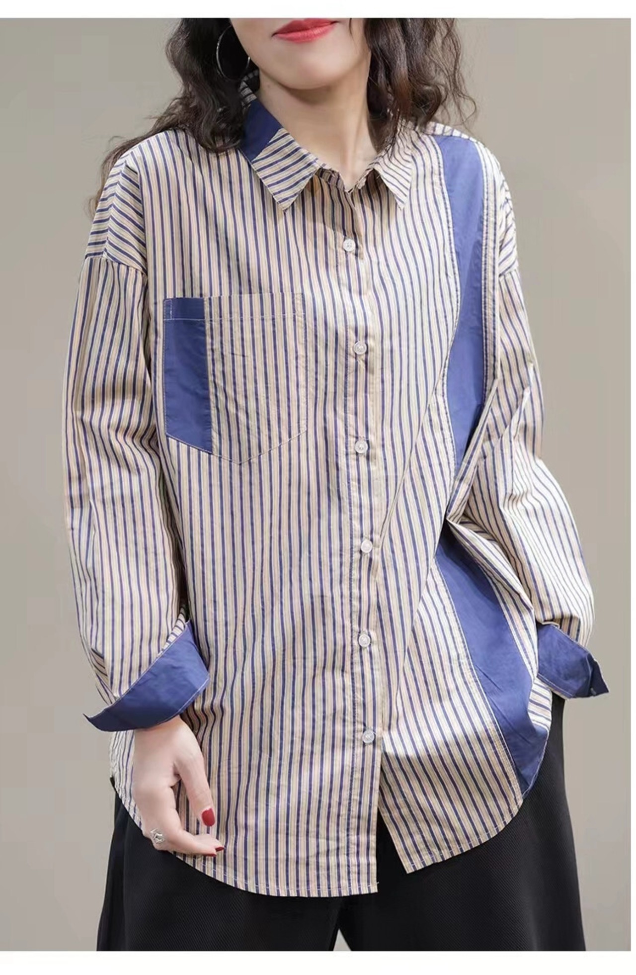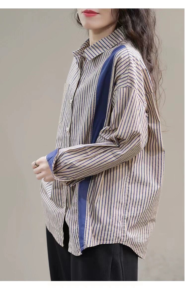 永貿易輸出大手ブランドテール商品撤退女性の春と秋の新しいスタイルのストライプのシャツ気質年齢を減らす長袖シャツトップ ロング スプリング 春物 オータム 秋物 sine3938630146