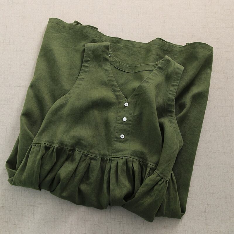 漏れを拾ってください!大手ブランドテールグッズレディースエストリネンVネックベストドレス綿麻ノースリーブサスペンダードレスのカウンター撤去 コットン sine26091582887