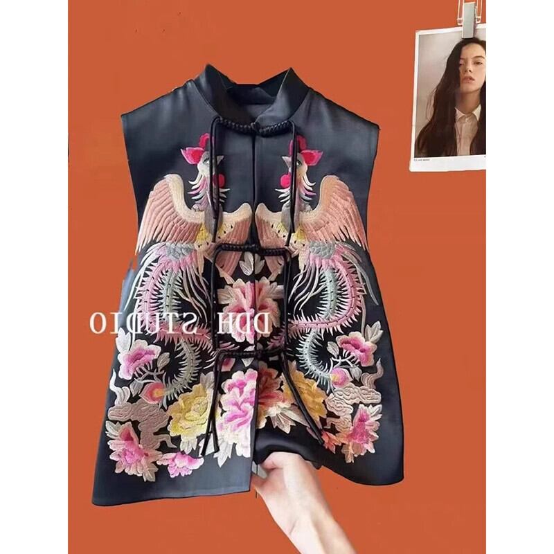 eign trade 割引ブランドテール商品中国風重工業刺繍ベストベスト女性レトロバックルチョッキトップ レッド sine58457230948