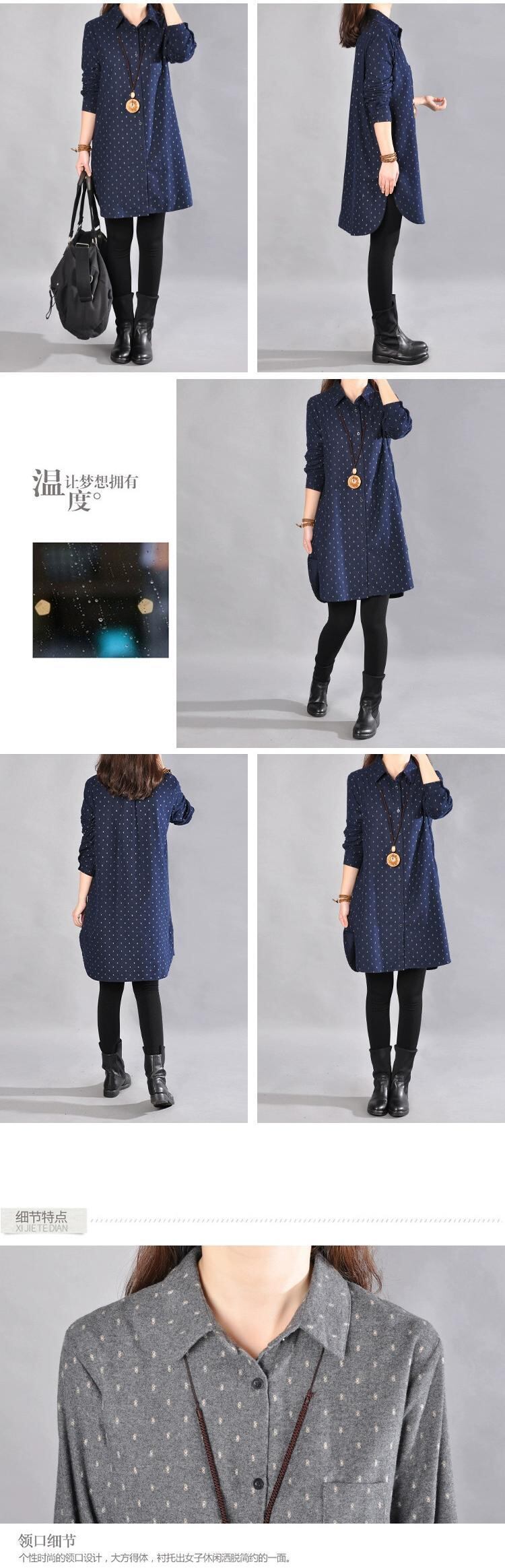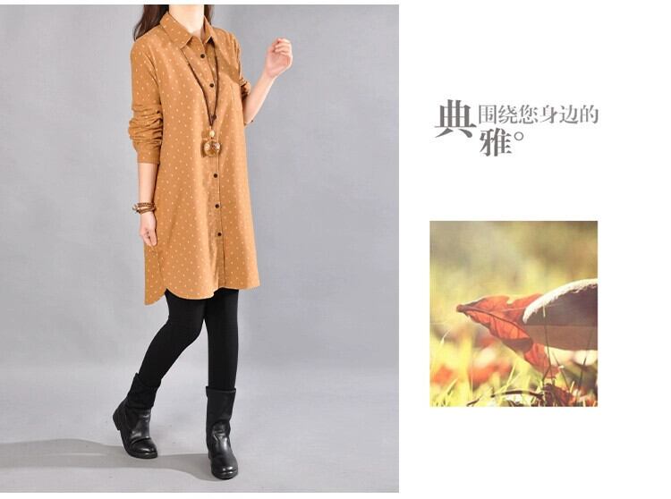長袖シャツ女性 2021 春と秋の新スタイルルーズミッドレングス水玉プラスサイズの女性の起毛水玉シャツスカート女性 ロング 大きめサイズ スプリング 春物 オータム 秋物 sine414432096