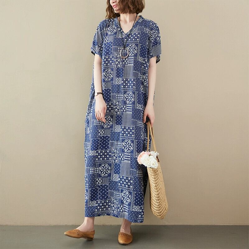 220 キャティーズプラスサイズの女性の夏ニューエイジ削減半袖 V ネックプリントドロップローブカジュアル A ライン薄いドレス 大きめサイズ サマー 夏物 Vネック Aライン sine67882855329