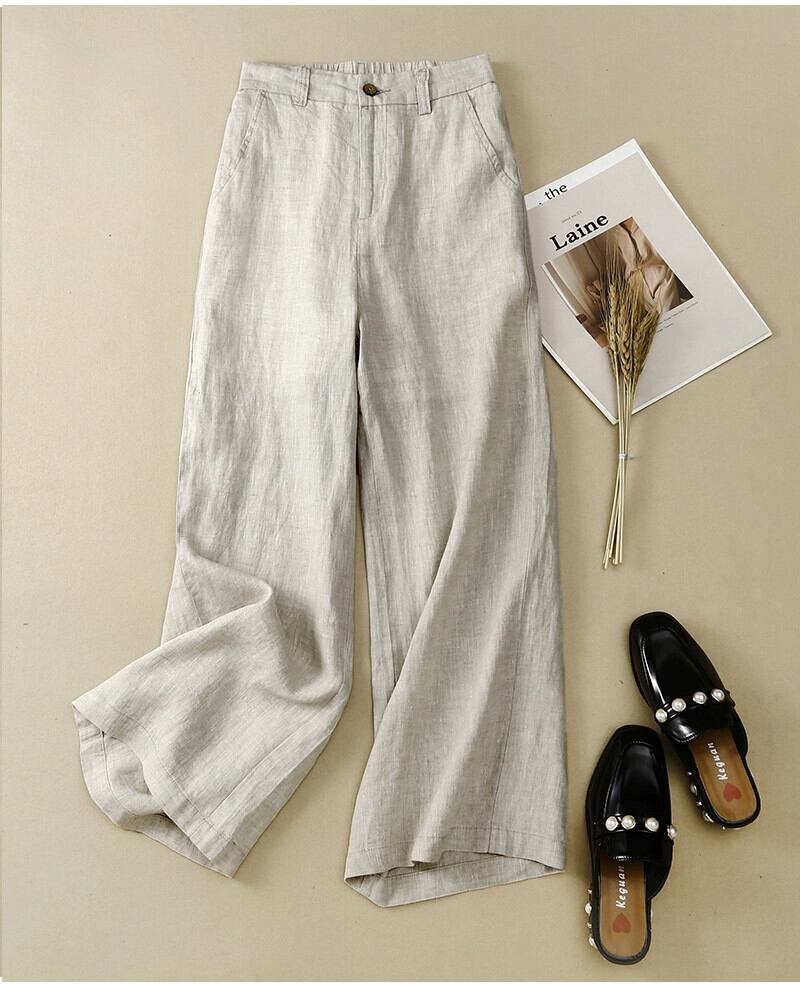 綿とリネンのワイドレッグパンツの女性の夏ルーズな大きいサイズの脂肪ミリメートルハイウエストパンツドレープ薄いストレートスリムリネン 9 点パンツ コットン 大きめサイズ サマー 夏物 sine66169794802