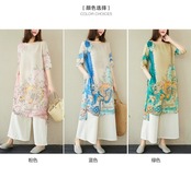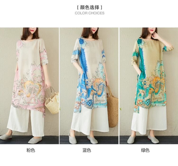 レトロな大きいサイズ 2 点セット ミッドレングス プリント半袖 T シャツ シャツ カジュアル 9 点ワイドレッグ パンツ綿とリネンのスーツの女性 コットン 大きめサイズ Tシャツ sine15123727206