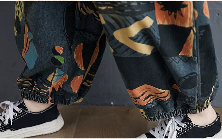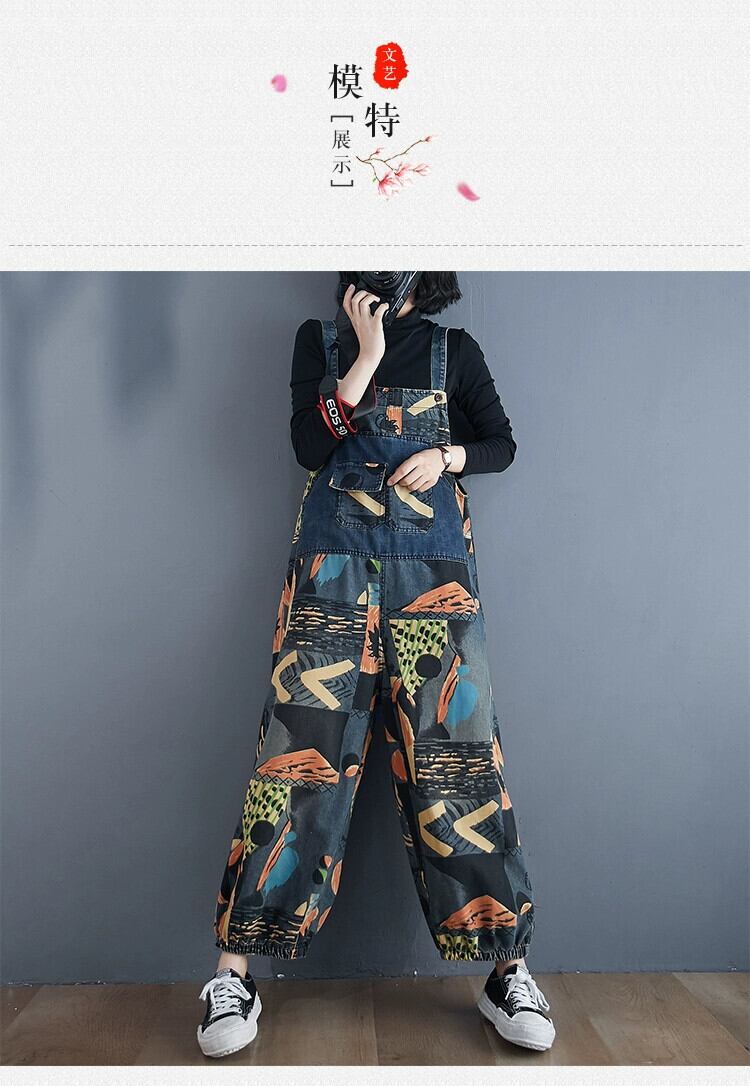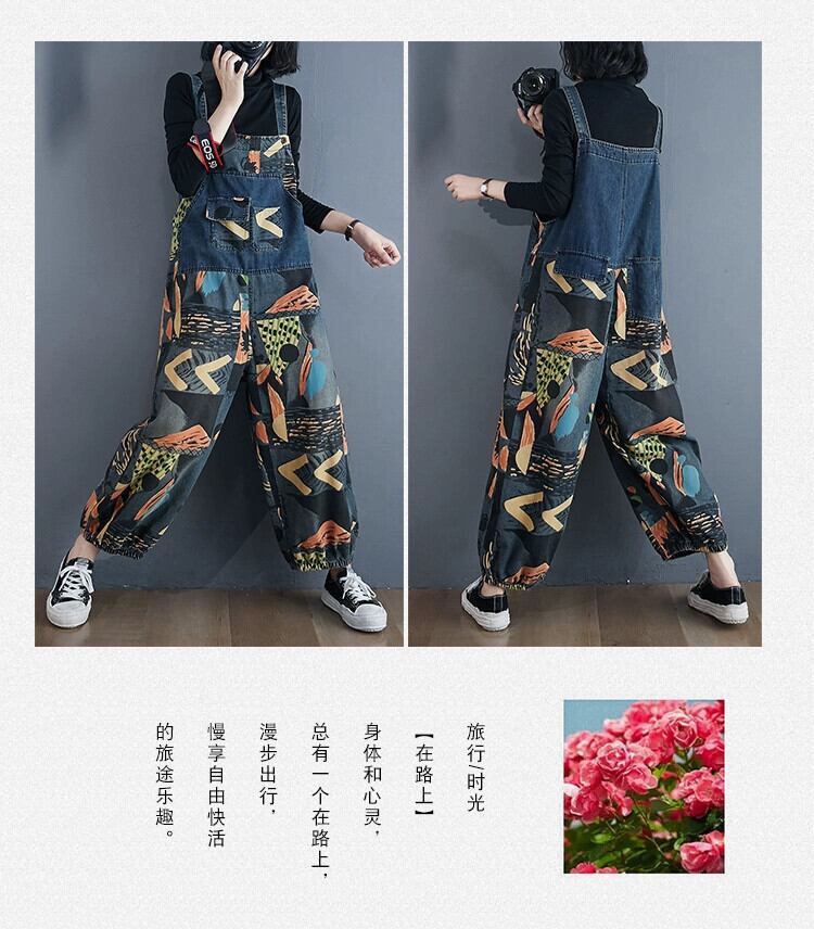 大きいサイズの女性のデニムオーバーオール春と秋のバージョンの新しい緩い老化を軽減するプリント股スリムカジュアルブルマ 大きめサイズ スプリング 春物 オータム 秋物 ショーツ ブルマー sine78463076167