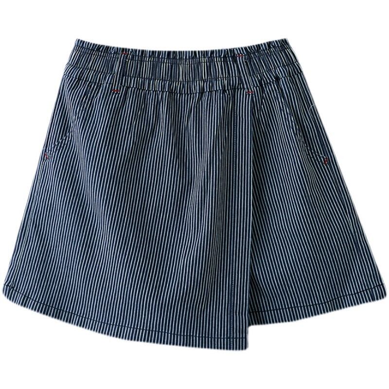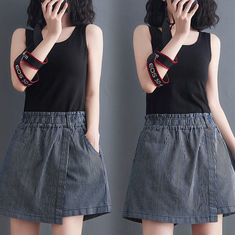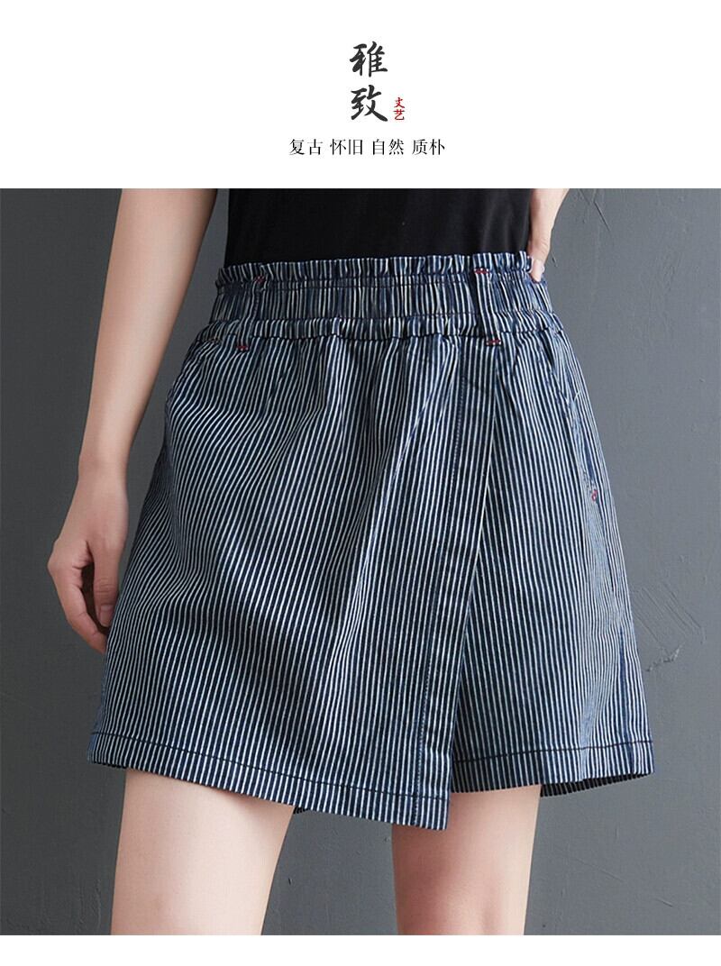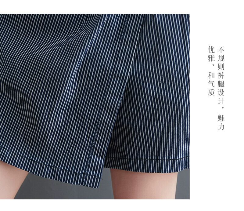 ストライプウォッシュジーンズ夏弾性ウエストパッチパンツカジュアルワイドレッグパンツルーズ大きいサイズ万能パンツ女性 エラスティック 伸縮 大きめサイズ サマー 夏物 ワイドパンツ sine8119660148