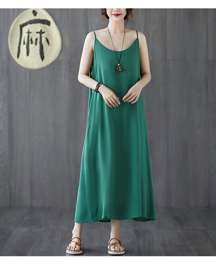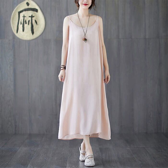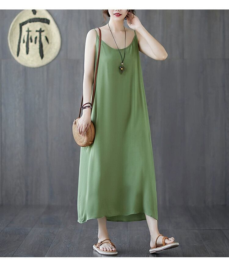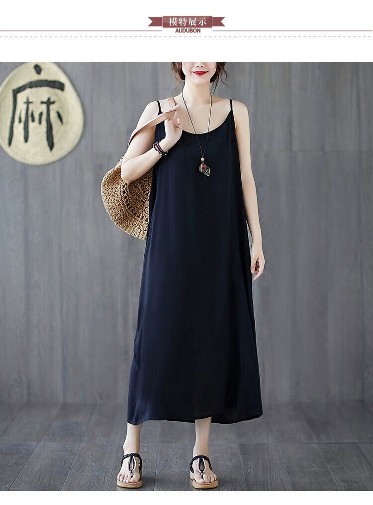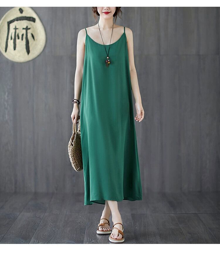 2021 新しい夏のサスペンダードレス、ルーズボトム、ミッドレングス、薄いソリッドカラーのベストドレス、プラスサイズの婦人服 大きめサイズ サマー 夏物 sine38486856007