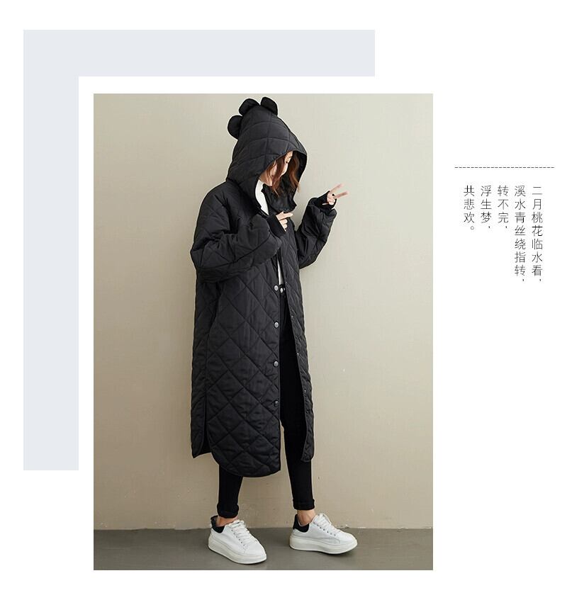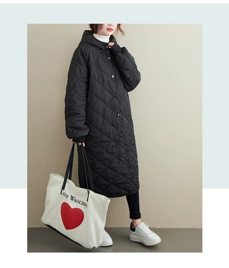 秋と冬の新しいミッドレングスのコットンコートの女性ルース大きいサイズ菱形キルティング肥厚膝上フード付き綿パッド入りジャケットウインドブレーカー 大きめサイズ オータム 秋物 ウィンター 冬物 sine34209406059