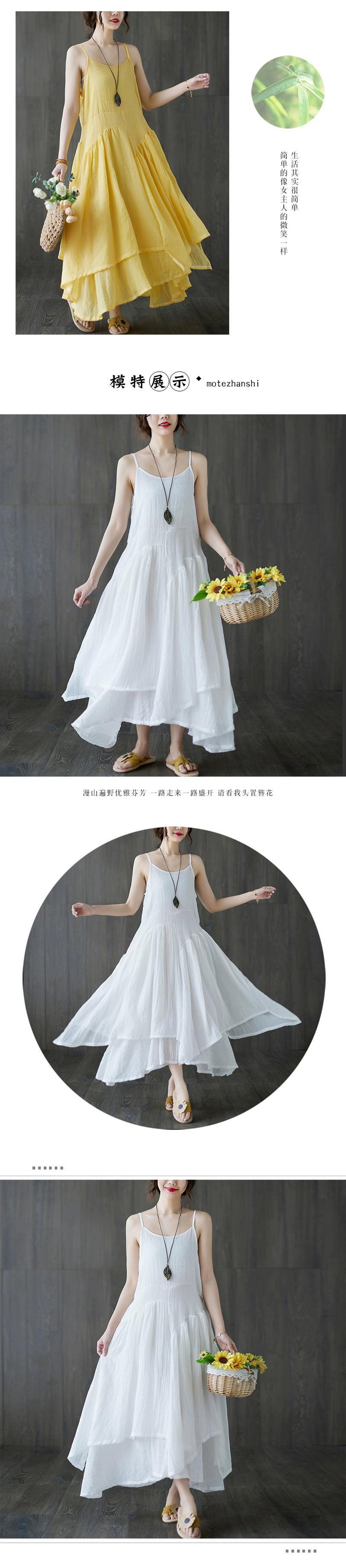 サスペンダードレスの女性の夏 2021 ゆったり大きいサイズソリッドカラー芸術的な不規則な大きな裾綿とリネンロングスカート コットン 大きめサイズ サマー 夏物 sine81384247615