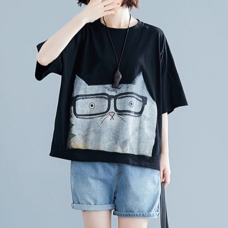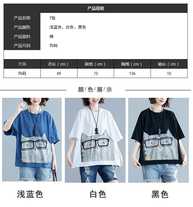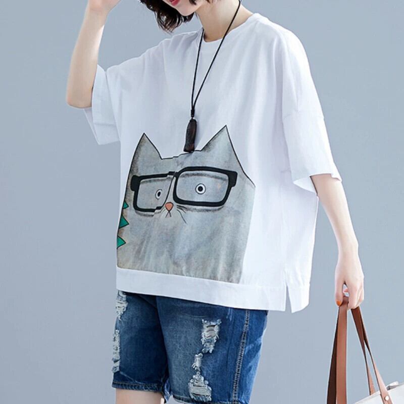 ファットシスタープラスサイズの女性の 2021 夏の新しいルーズ漫画プリント年齢を軽減 200 ポンドトップカジュアル半袖 T シャツ 大きめサイズ サマー 夏物 Tシャツ sine1382173702