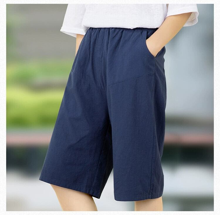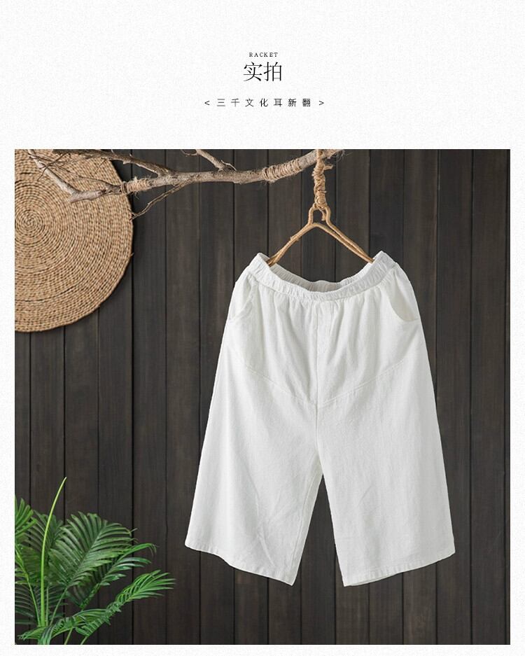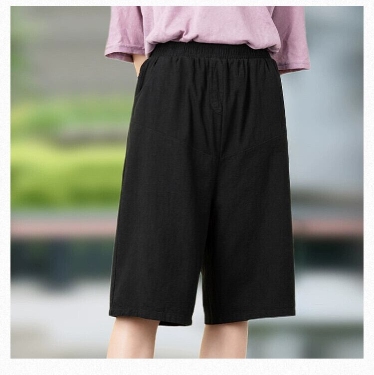 リネン 5 点パンツの女性、夏の新しいゆったりとした大きいサイズのスタイルのワイドレッグカジュアルミッドパンツ 6 点ストレートの綿とリネンのショートパンツの女性 コットン 大きめサイズ サマー 夏物 ショーツ ブルマー sine6478234047