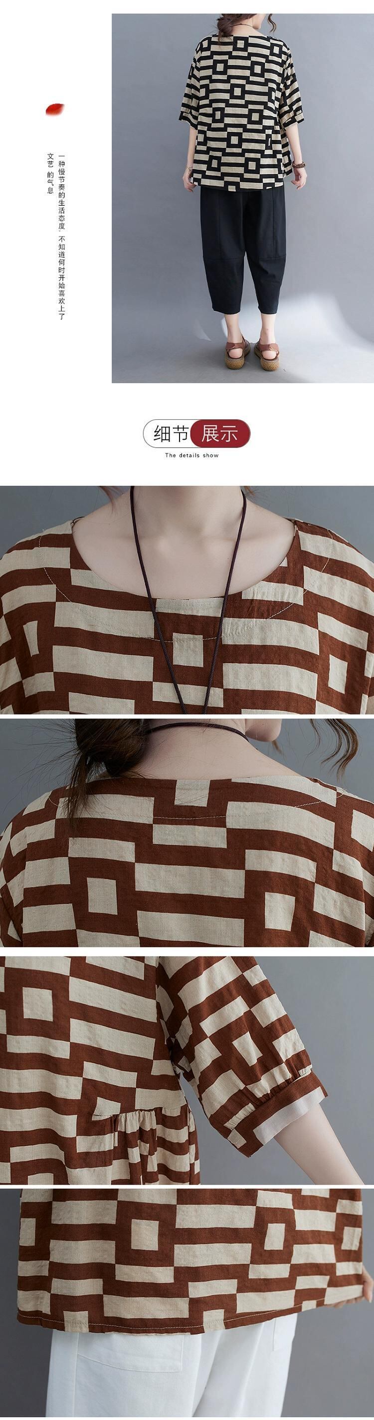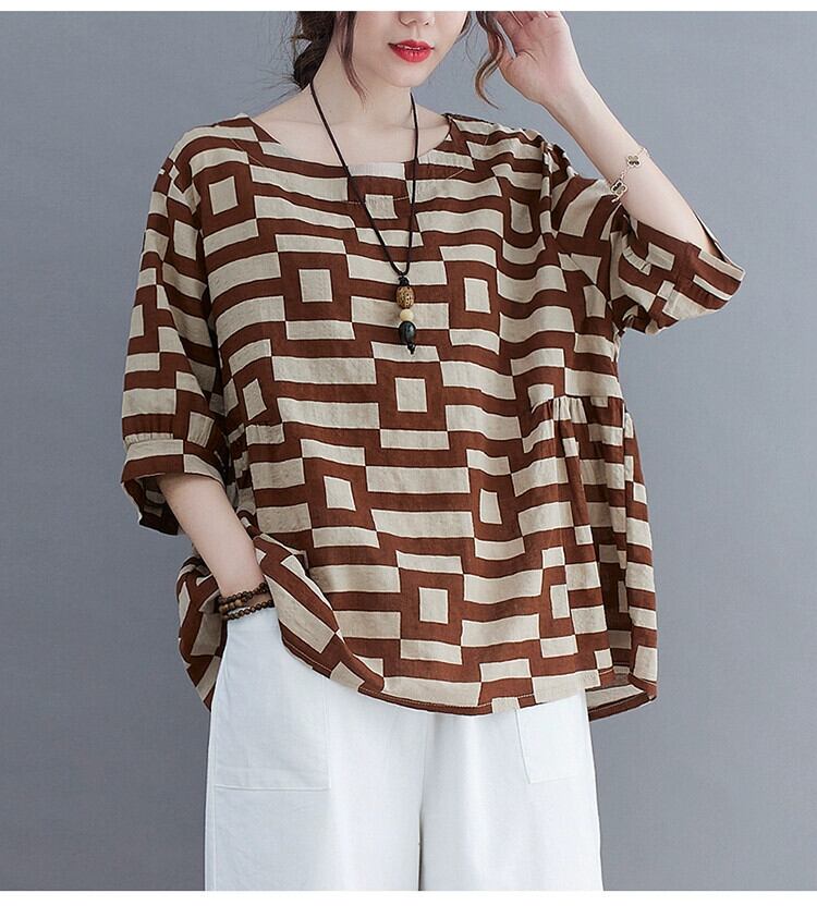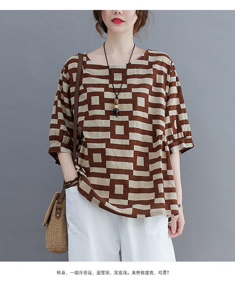 夏のコットンとリネンの半袖 T シャツ、脂肪、年齢を軽減するプリント、スリム、プラスサイズの女性のお腹をカバーするトップス 大きめサイズ サマー 夏物 Tシャツ sine97302866298