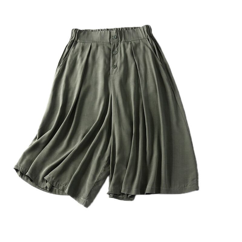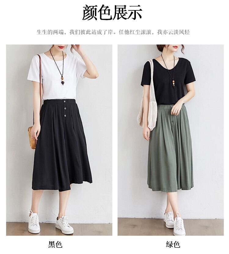 コットンとリネンのワイドレッグパンツの女性 2021 夏の新しいルーズプラスサイズの婦人服厚いヒップと脚をカバーし、スリムカジュアルリネン七分丈パンツスカート 大きめサイズ サマー 夏物 sine55827408268
