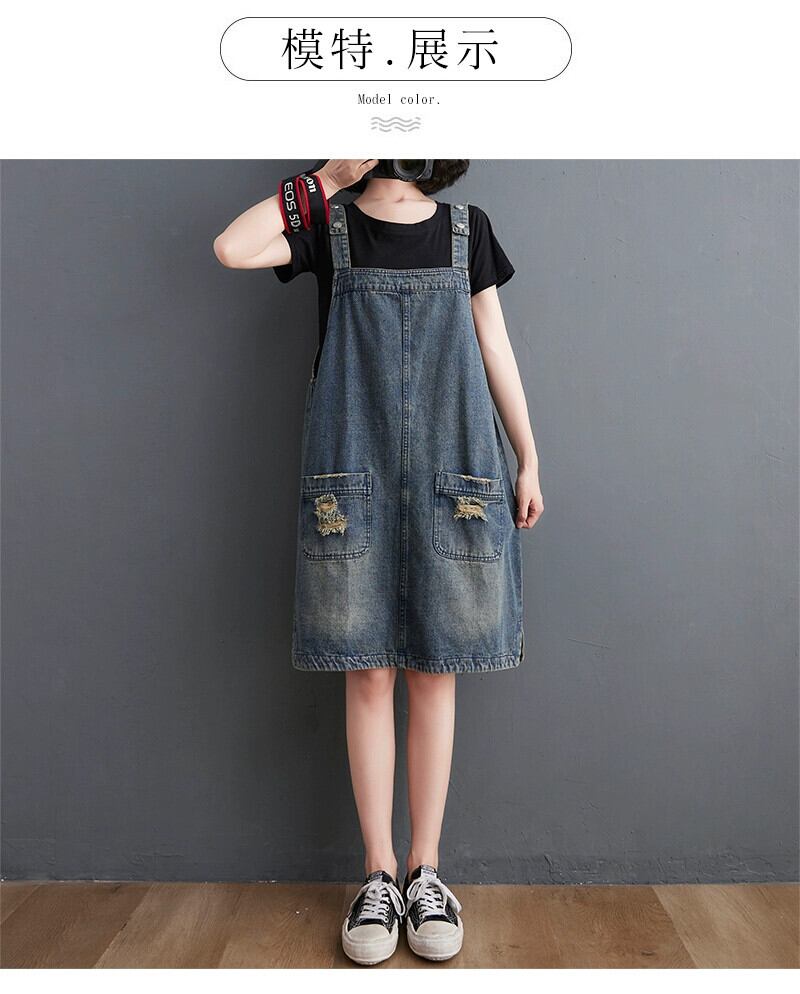 老化防止デニムサスペンダースカート夏 2021 ルーズファット mm ホールポケットミッドレングスプラスサイズの女性のサスペンダードレス 大きめサイズ サマー 夏物 sine15838376209