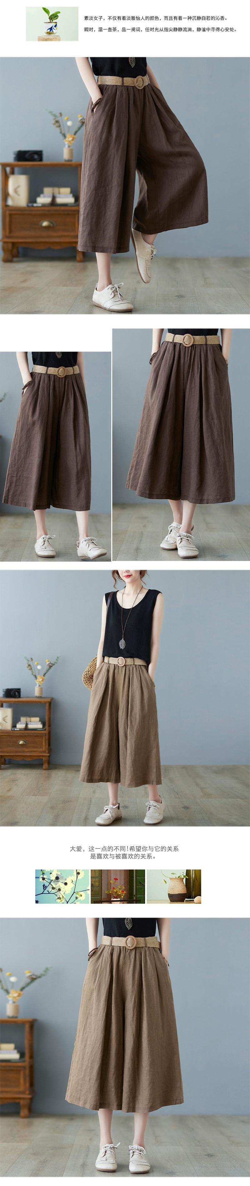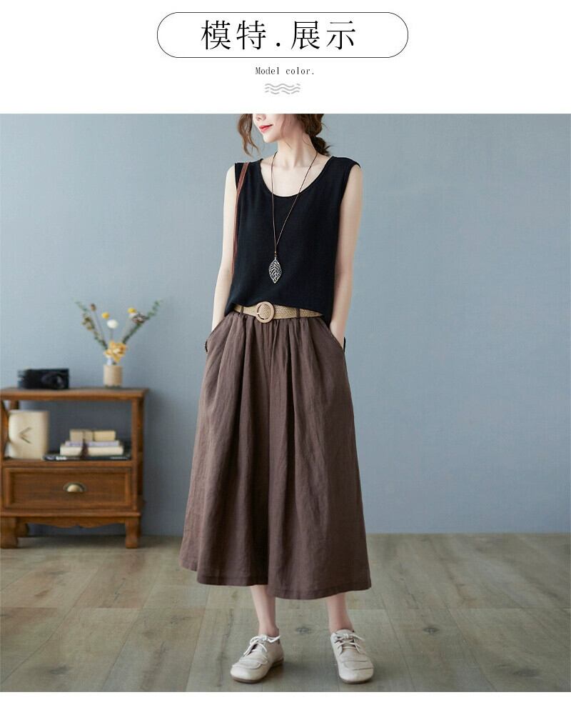コットンとリネンのワイドレッグパンツの女性 2021 夏の新スタイル文学無地ハイウエスト緩い大きいサイズカジュアルリネン七分パンツスカート 大きめサイズ サマー 夏物 ソリッドカラー sine26942605077