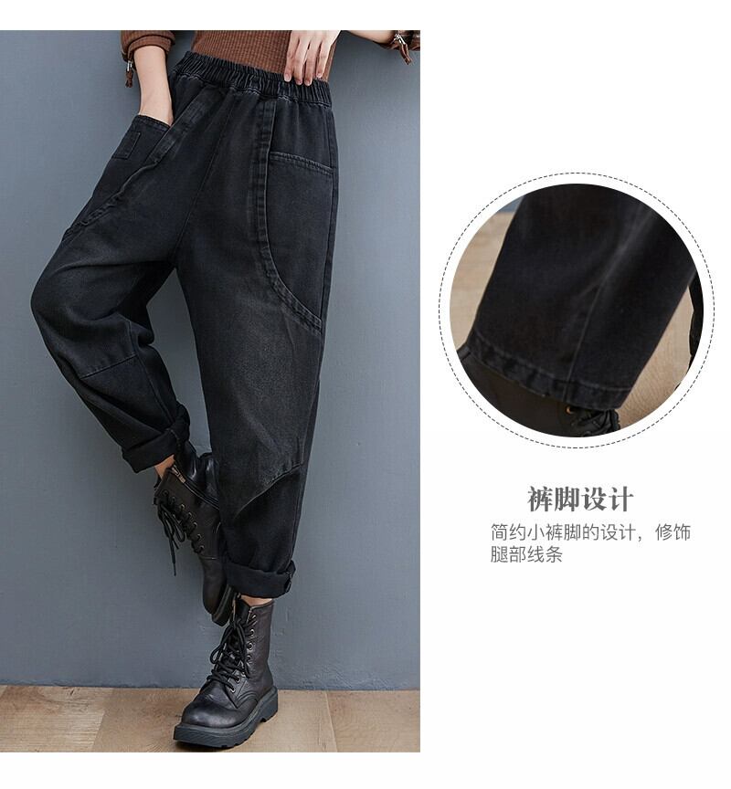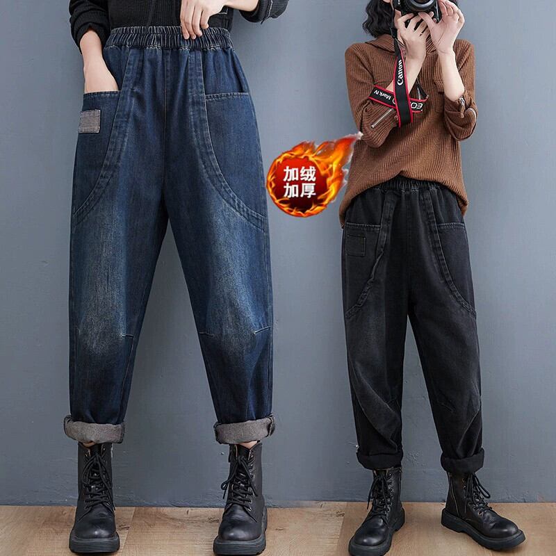 有能ダブルポケットジーンズ女性の秋冬 2021 冬ルーズ大きいサイズベルベット肥厚ウエストハーレムパンツ 大きめサイズ オータム 秋物 ウィンター 冬物 sine39208950130