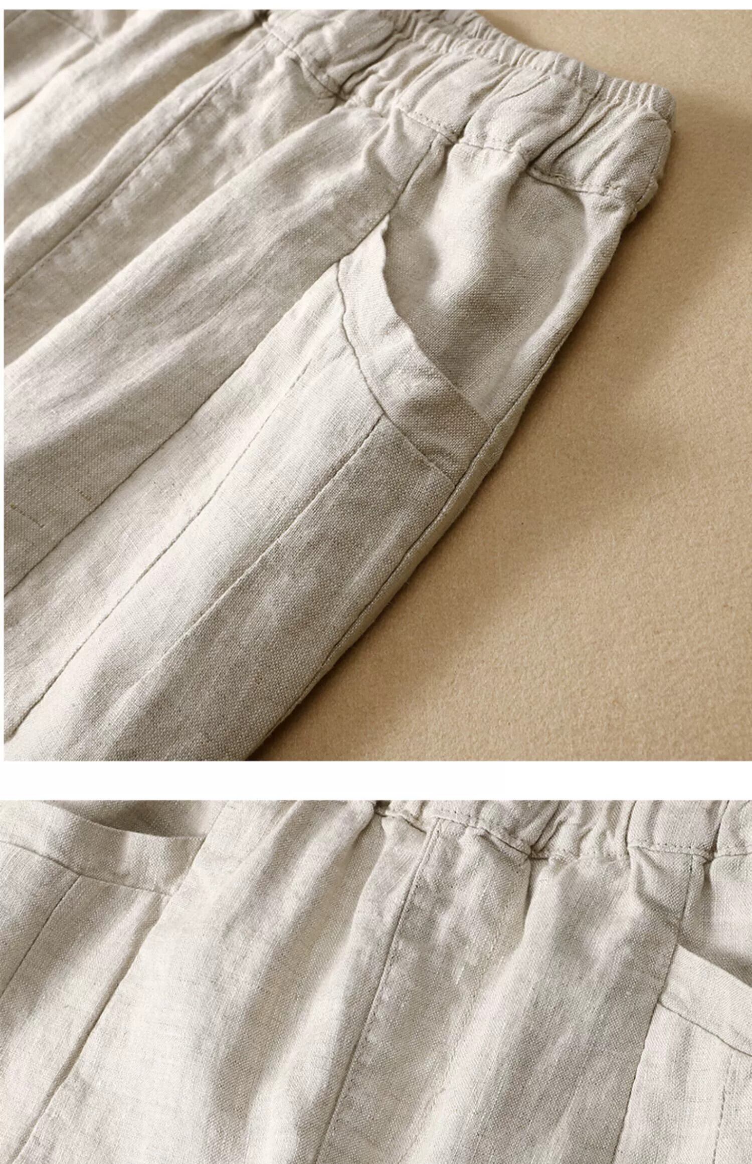 2022 夏のコットンとリネンの 9 点パンツの女性のルーズな大きいサイズの多彩な弾性ウエストリネンハーレムパンツ エラスティック 伸縮 大きめサイズ サマー 夏物 sine88961501903