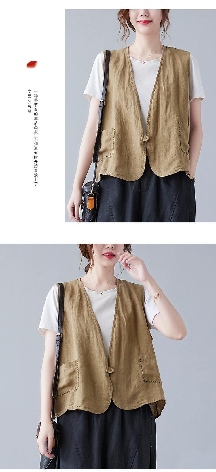 2021 夏の綿とリネンのベストジャケット女性の緩い大きいサイズ文学無地 1 つボタンベストトップ コットン 大きめサイズ サマー 夏物 ソリッドカラー sine19908142898