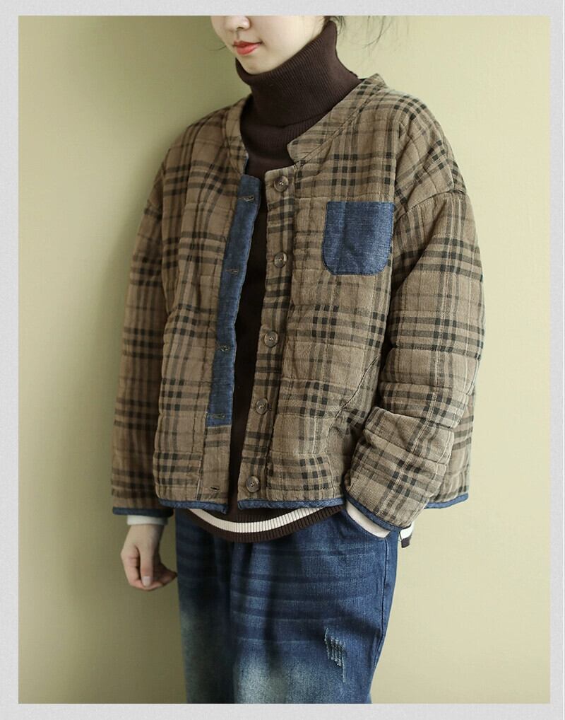 200 ポンド綿パッド入りショートジャケット女性冬ルーズ大サイズファット mm レトロチェック柄キルティング肥厚暖かいスタンドアップカラー綿ジャケット コットン 大きめサイズ ウィンター 冬物 sine29737783427