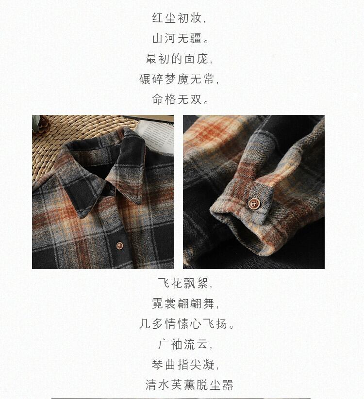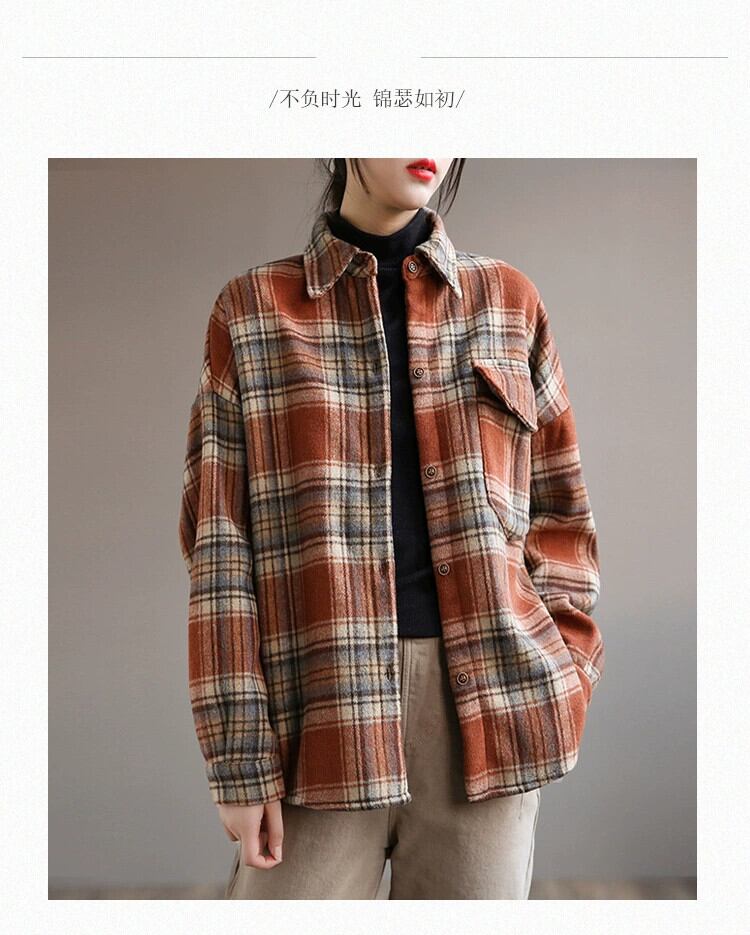 のハイエンドのeign trade輸出ブランドの女性の大きいサイズのチェック柄のウールの厚い起毛長袖シャツジャケット ロング 大きめサイズ sine14098310130