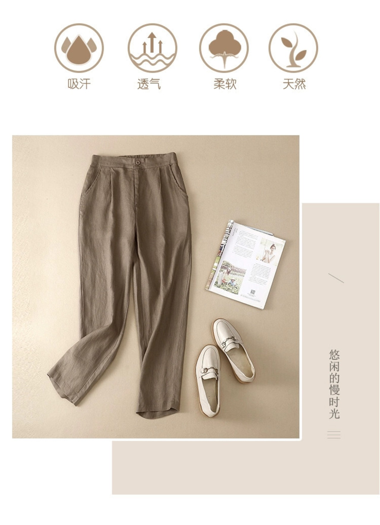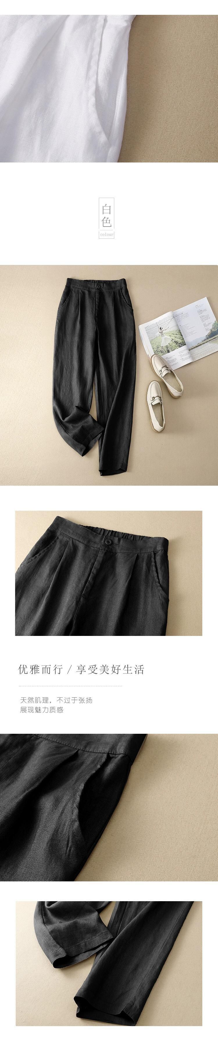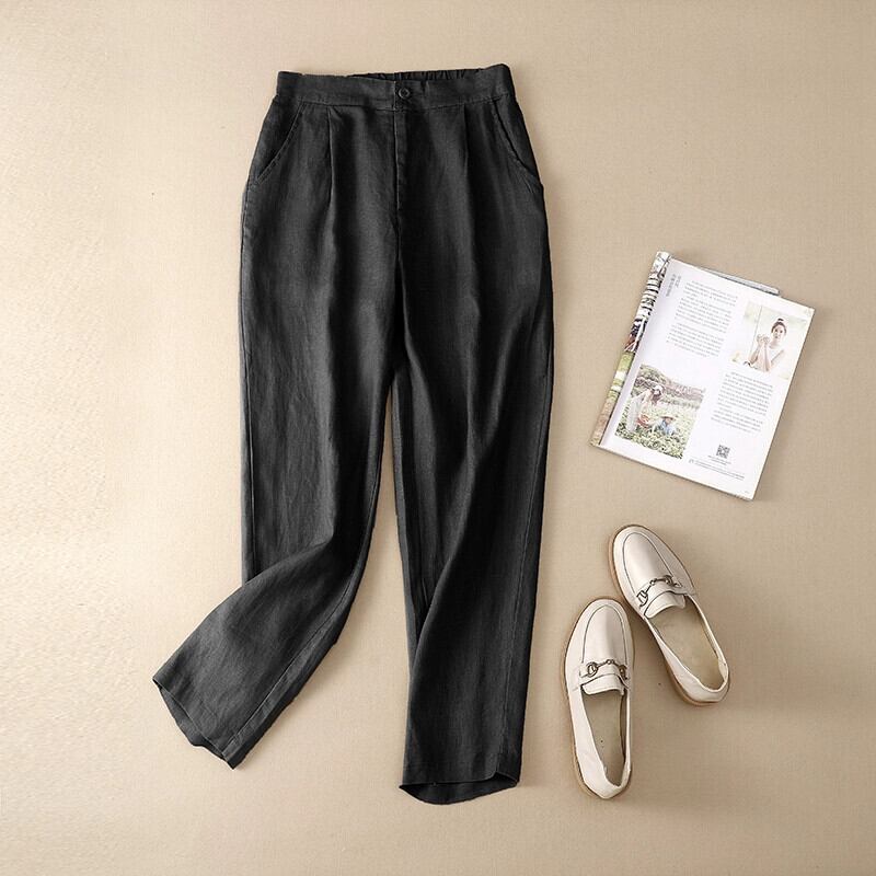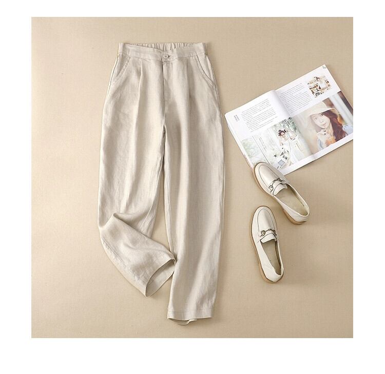 コットンとリネンのハーレムパンツの女性 2021 夏緩い大きいサイズ芸術的な無地の弾性ウエスト小さな足カジュアルリネン 9 点パンツ エラスティック 伸縮 大きめサイズ サマー 夏物 ソリッドカラー sine84959433699