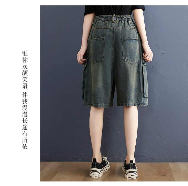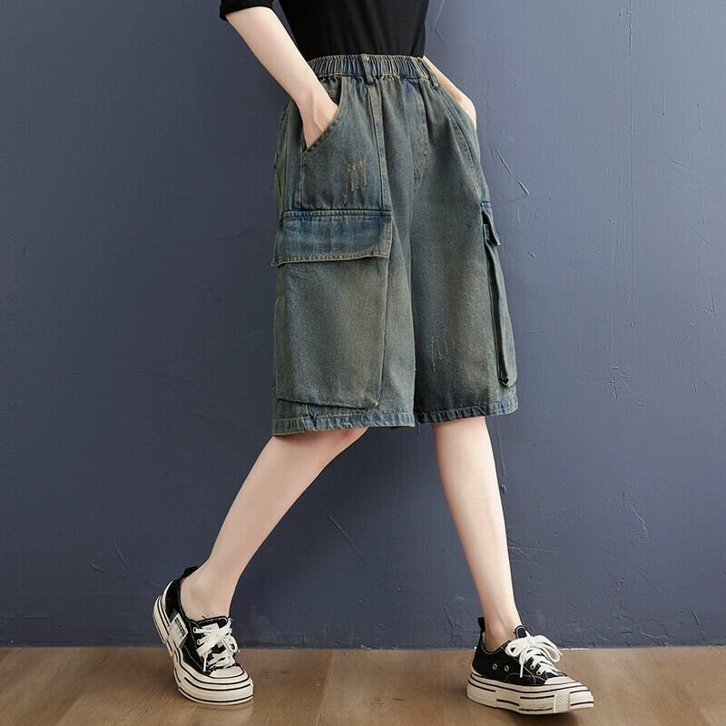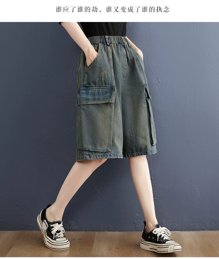 デニムショーツ レディース 2021 夏新作 ゆったり 大きいサイズ パーソナライズされた大きなポケット ハイウエスト スリム カジュアル ワイドレッグショーツ ハイウェスト 大きめサイズ サマー 夏物 ブルマー ワイドパンツ sine64188641024