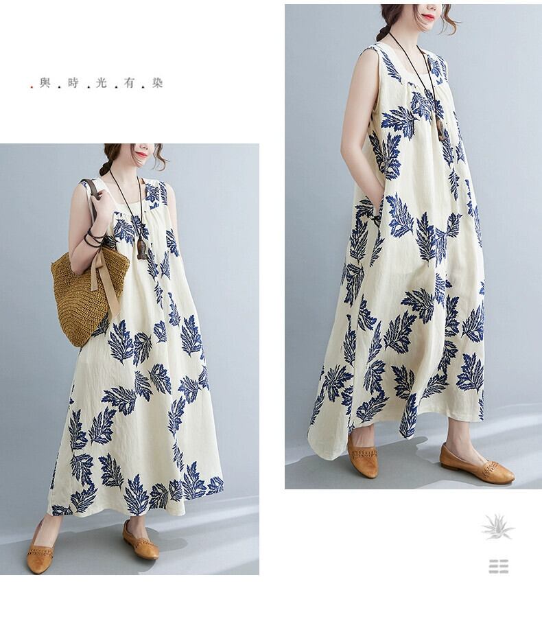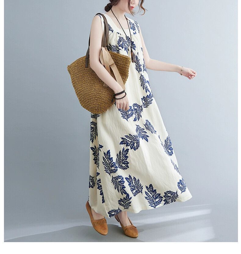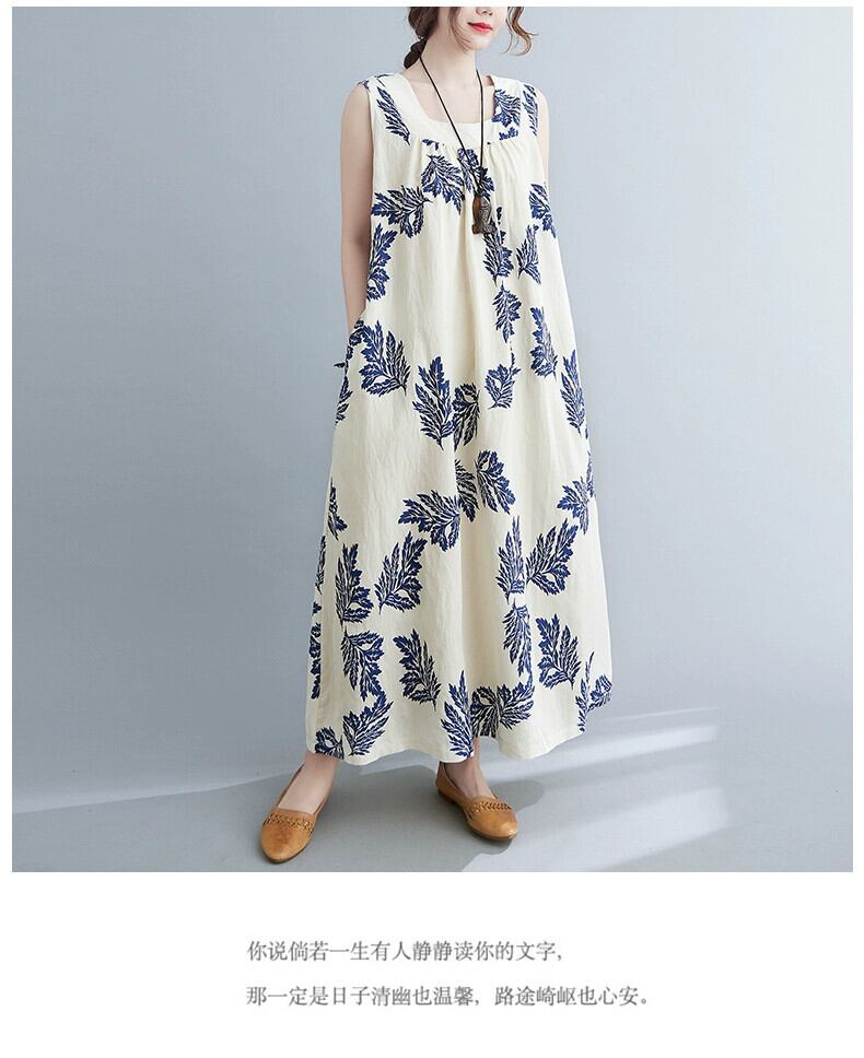 西洋スタイルのベストドレスの女性の夏 2021 新しい大きいサイズの女性のゆるい脂肪ミリメートルプリントエレガントカジュアルノースリーブロングスカート 大きめサイズ サマー 夏物 sine28527431250
