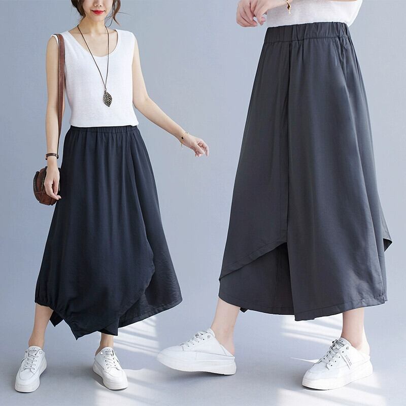 不規則な無地ワイドレッグズボンスカート女性夏ルーズルーズ脂肪ミリメートルパーソナライズスプライシング秋カジュアルクロップドパンツプラスサイズの婦人服 大きめサイズ サマー 夏物 ワイドパンツ ソリッドカラー sine3375023653