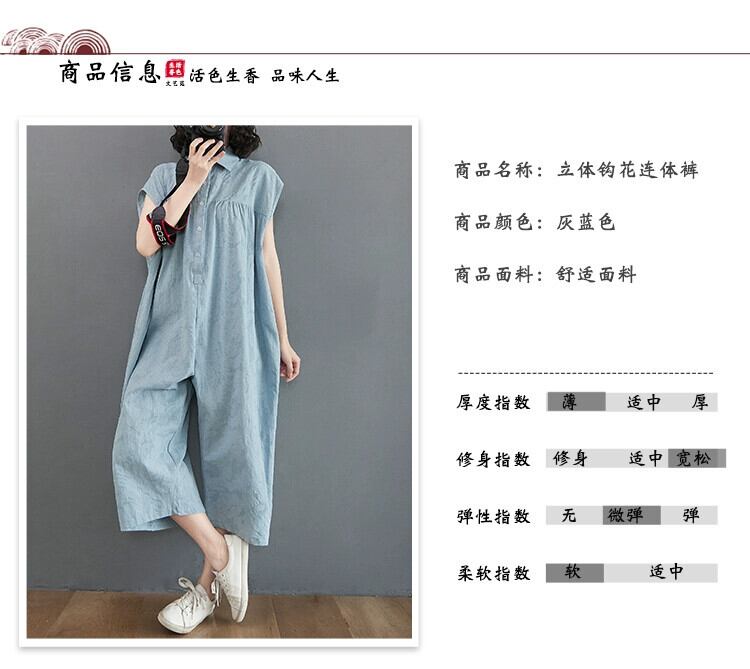 ワイドレッグジャンプスーツ女性、夏ルーズ、ファット、ソリッドカラージャカード、年齢軽減、隠し肉ジャンプスーツ、プラスサイズの女性服 大きめサイズ サマー 夏物 sine440232070