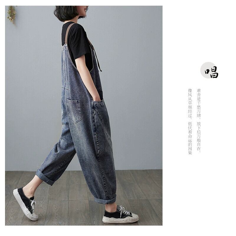 プラスサイズの女性のデニムオーバーオール 2021 秋と冬ルーズファットシスタースタイルダメージ加工ワンピースカジュアルハーレムパンツ 大きめサイズ オータム 秋物 ウィンター 冬物 sine48221150730